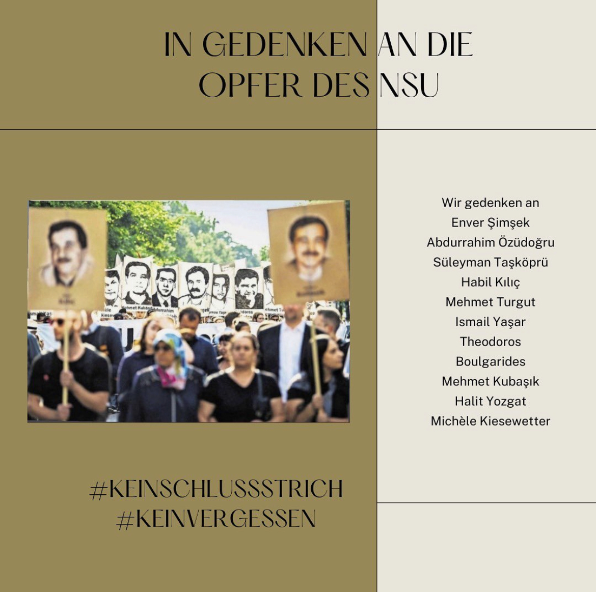 Liebe Freundinnen und Freunde, die Selbstenttarnung des NSU hat sich am 4. November 2021 zum zehnten Mal gejährt. Das Leid der Opfer und ihrer Familien durch die Morde an sich und den Umgang der Behörden im Kontext der Ermittlungen werden
